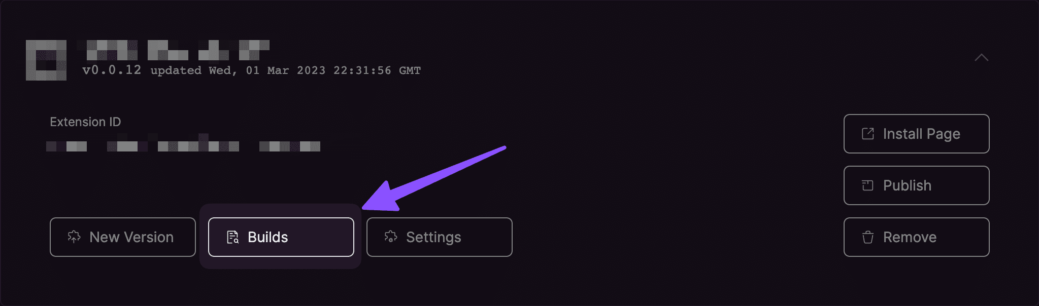 Once you've linked your extension to GitHub, you can view the build history and logs for your extension.