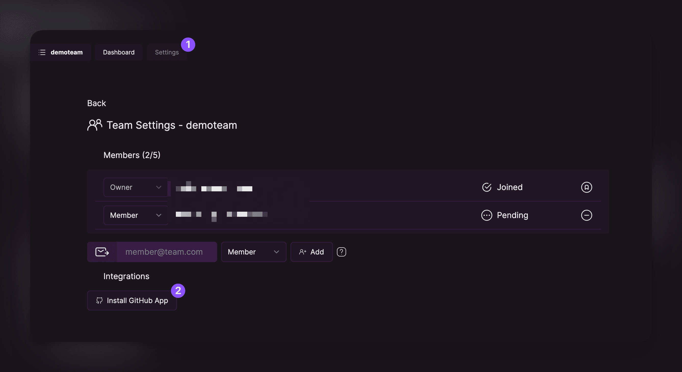 To install the GitHub App on your organization, go to your team settings page and click "Install GitHub App". Then, follow the instructions to install the app on your organization, and select the repositories that you'd like Builder to have access to.