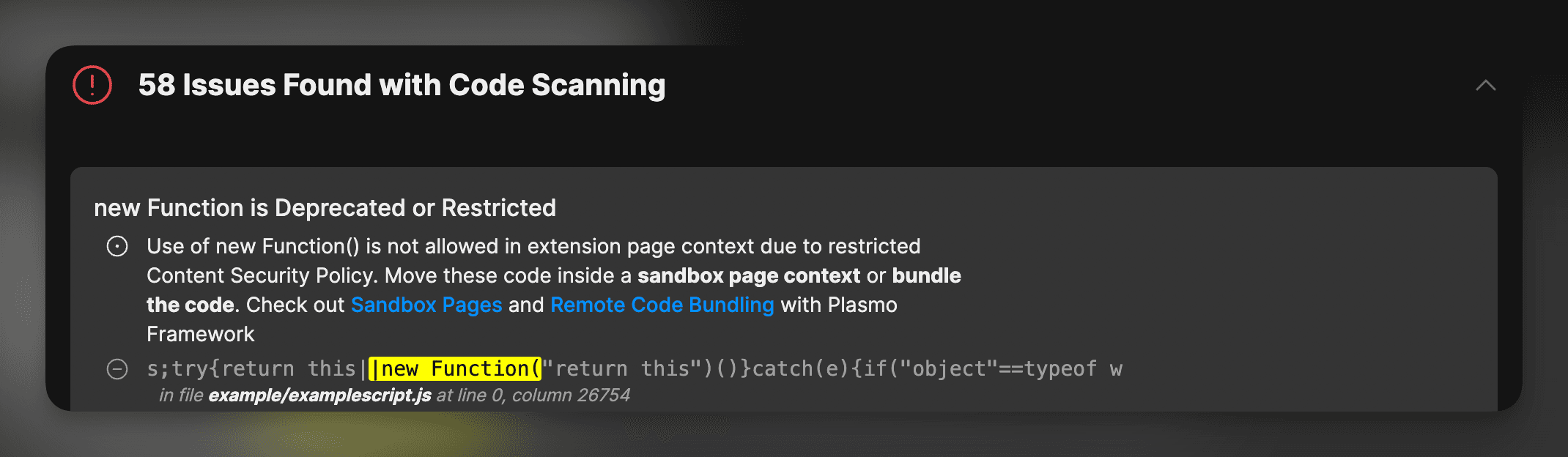 If you haven't already, click "Run Code Scanning" to scan your code for any issues. This will help you identify any issues that you might have with your extension.