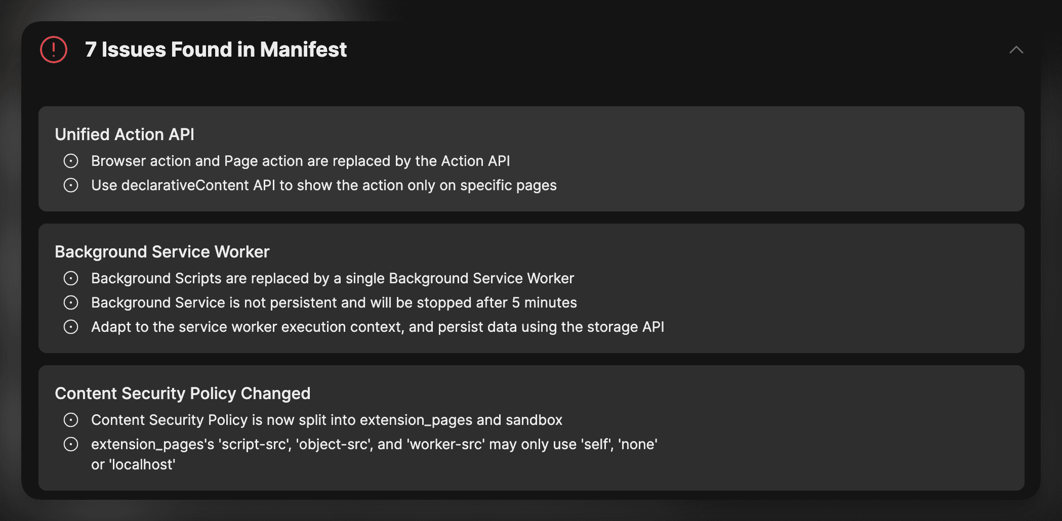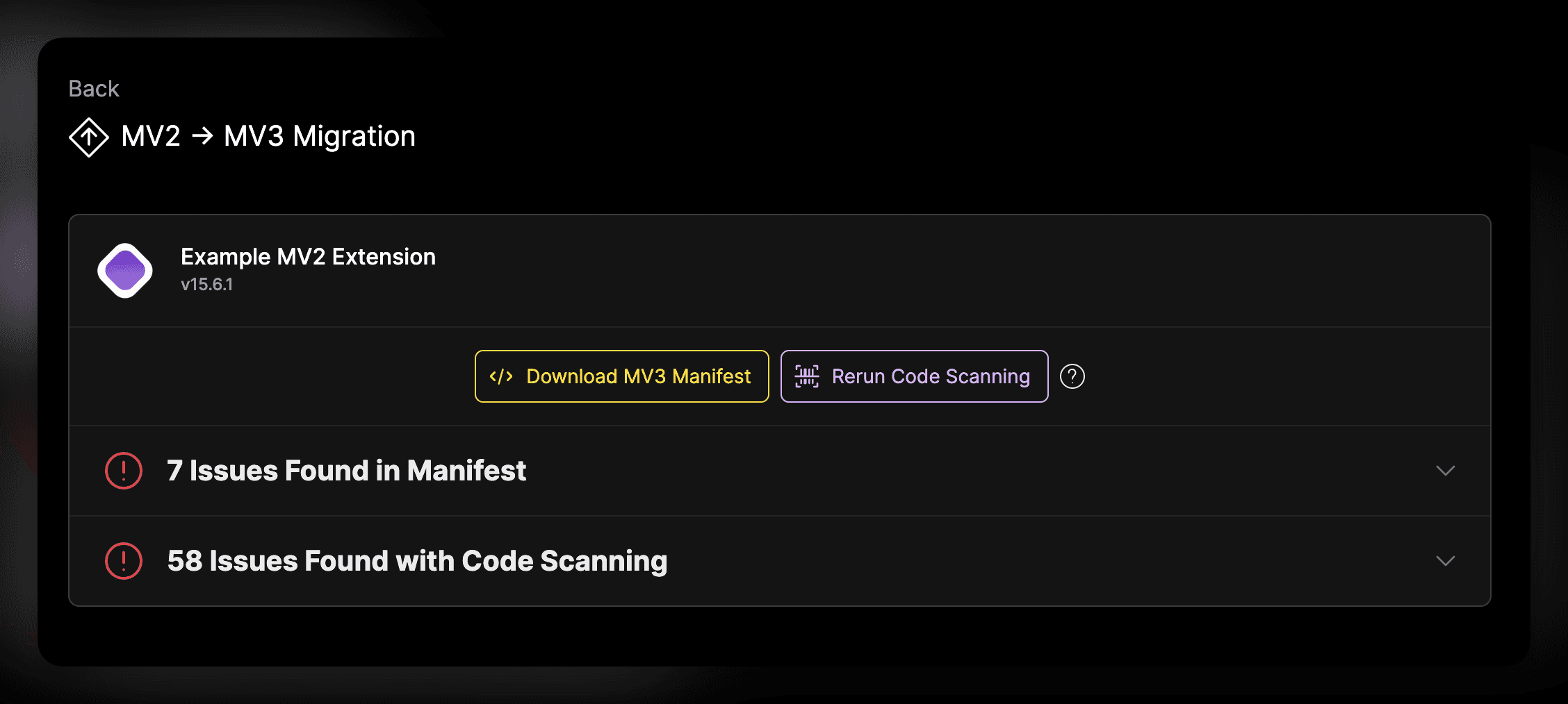 Pro users get the added benefit of having their code scanned. This will identify if your extension uses any MV2-only features that are not supported in MV3.